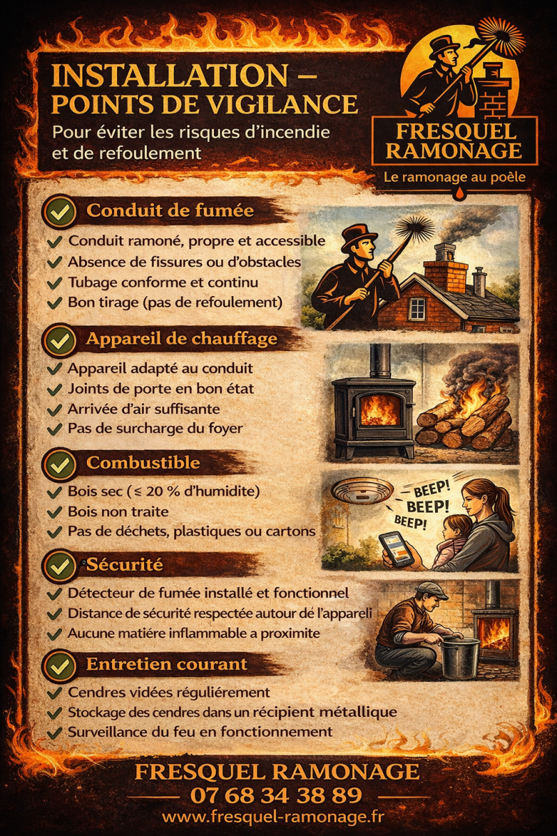 👉 Fresquel Ramonage, spécialiste du ramonage de poêles et cheminées, intervient pour :