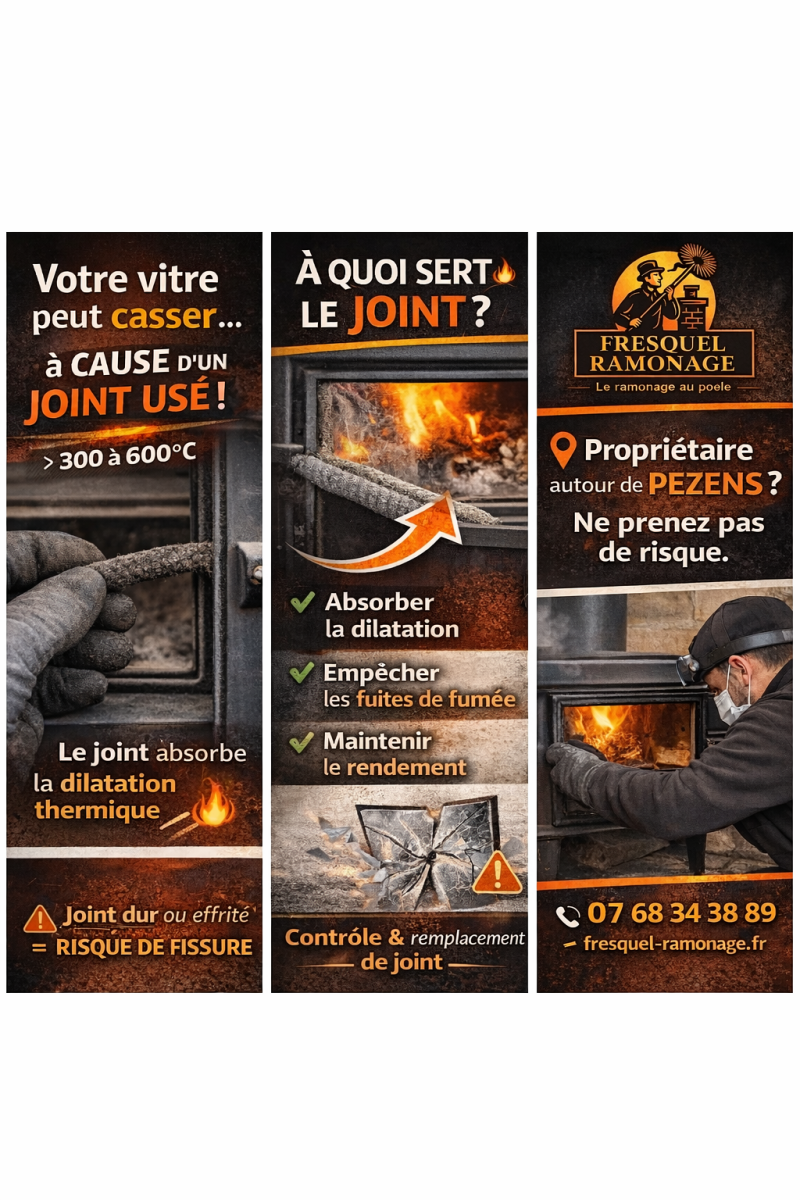 Le joint de porte de votre poêle ou insert joue un rôle crucial : il assure l'étanchéité du foyer et permet une combustion contrôlée. Un joint usé ou abîmé entraîne des entrées d'air parasites, une surconsommation de bois, un encrassement accéléré du conduit et des risques pour votre sécurité. Vérifiez régulièrement son état et remplacez-le dès qu'il montre des signes d'usure.